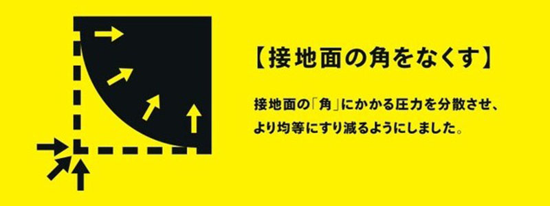 パターン主要部分の高剛性化により、走行時のふらつきを防止します。